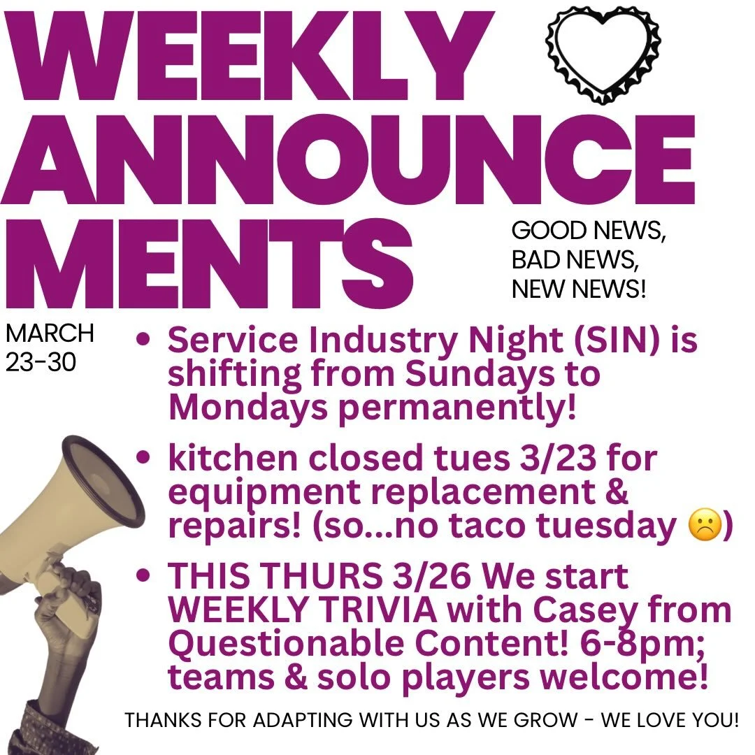 Follow us on Instagram or Facebook for events and updates